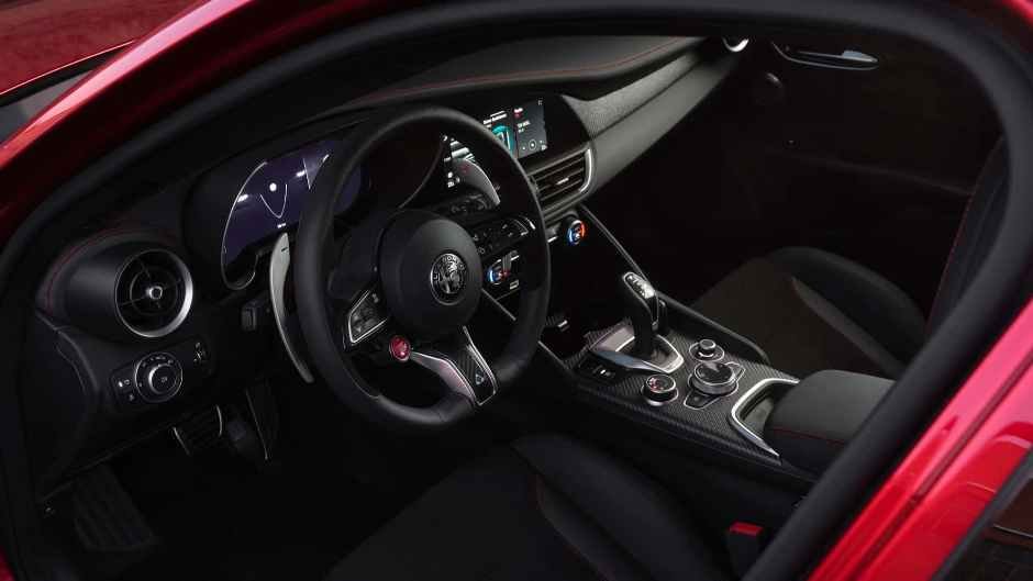 Hər iki model 520 at qüvvəli 2,9-litrlik V6 mühərrik və səkkiz pilləli ZF avtomatik transmissiya ilə təchiz olunub. Giulia arxa, Stelvio isə tam ötürməlidir; hər ikisində arxa özükilidlənən differensial var. Sıfırdan 100 km/saat sürətə Giulia 3,9 saniyəyə, Stelvio isə 3,8 saniyəyə çatır. Maksimum sürət müvafiq olaraq 307 km/saat və 285 km/saat təşkil edir. Standart olaraq karbon-keramika əyləc və Akrapovič buraxılış sistemi daxildir.
