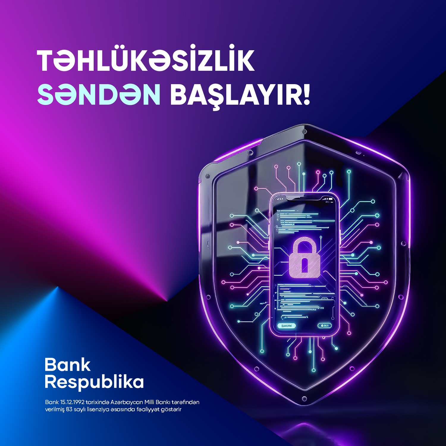 Bank Respublika hər kəsi rəqəmsal mühitdə məsuliyyətli davranmağa, təhlükəsizlik qaydalarına əməl etməyə və şəxsi məlumatlarını qorumağa çağırır.