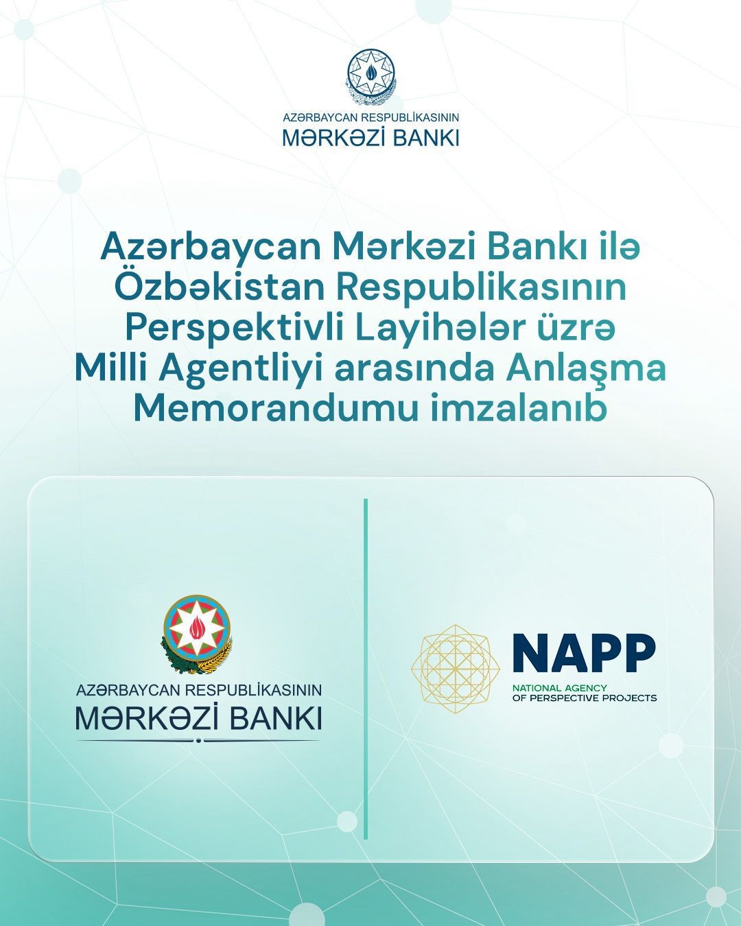 Azərbaycan Respublikasının Mərkəzi Bankı və Özbəkistan Respublikasının Perspektivli Layihələr üzrə Milli Agentliyi arasında əməkdaşlığa dair Anlaşma Memorandumu imzalanıb.