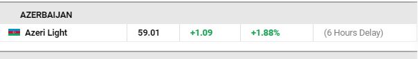 Fins.az-ın məlumatına görə, Azərbaycan neftinin 1 barrelə olan qiyməti 1,88% bahalaşaraq 59,01 dollar təşkil edib.