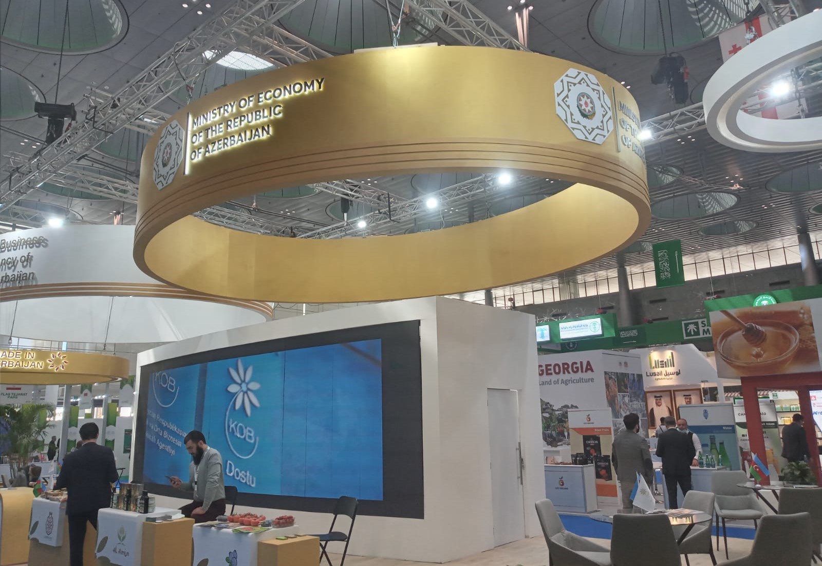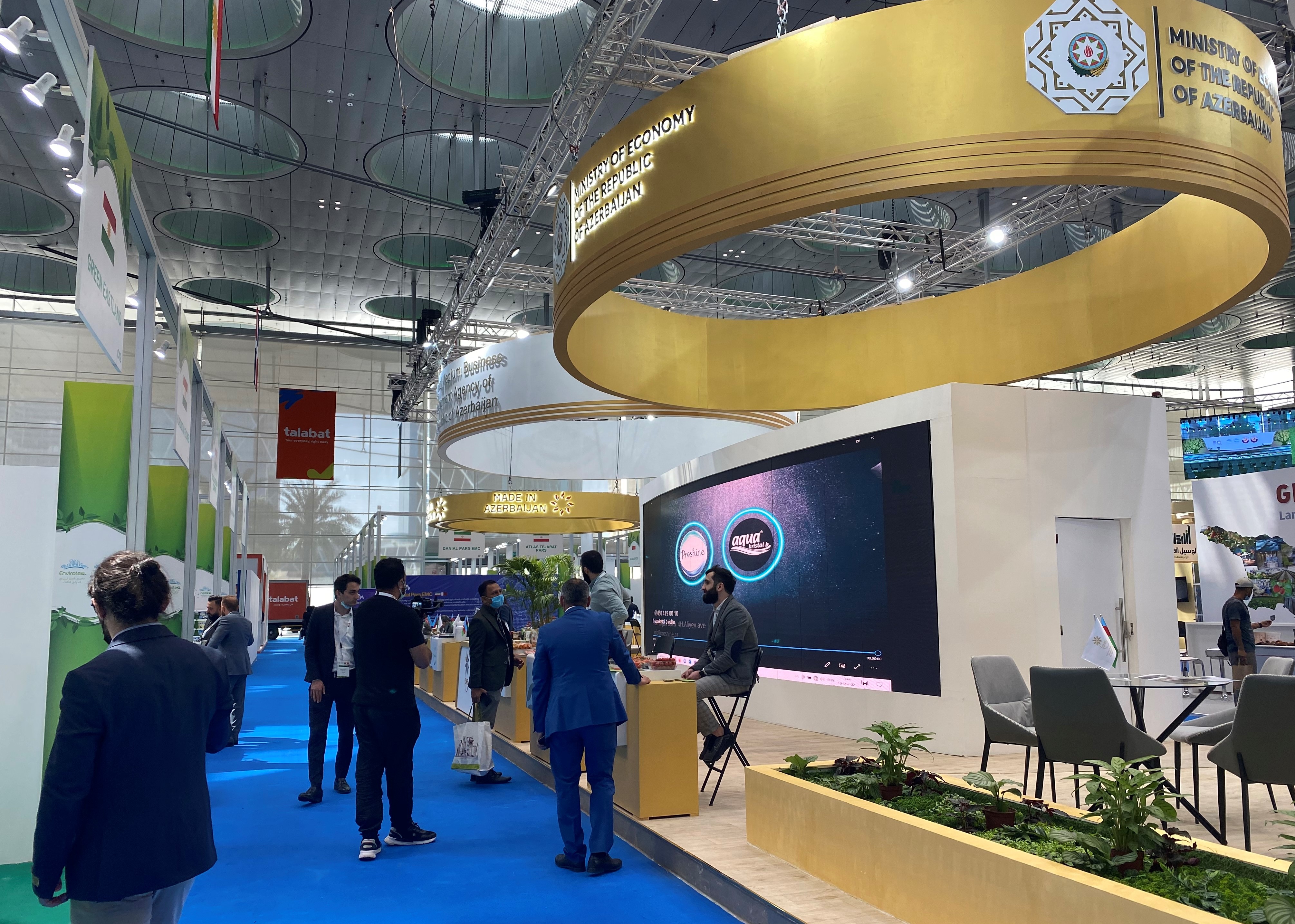 "Fins.az"xəbər verir ki, Doha Sərgi və Konqres Mərkəzində keçirilən sərgidə Azərbaycan Respublikasının İqtisadiyyat Nazirliyinin dəstəyi, Kiçik və Orta Biznesin İnkişafı Agentliyinin (KOBİA) təşkilatçılığı ilə Azərbaycan pavilyonunda “Made in Azerbaijan” brendi ilə yerli məhsullarımız nümayiş olunur. Sərgidə kənd təsərrüfatı, qida və ətraf mühit sahələri üzrə Azərbaycanın mikro, kiçik və orta sahibkarlıq subyektləri tərəfindən zəfəran, çiyələk, mürəbbə, kompot, meyvə şirələri, konservləşdirilmiş məhsullar, narşərab, lavanda yağı və balı, qablaşdırılmış giləmeyvə, təbii və soyuq sıxım qida yağları və s. sərgilənir. Pavilyonda həmçinin, yerli şirkətlərimiz tərəfindən kənd təsərrüfatı üçün müasir həllər, aqrar sahə üzrə biokimya məhsulları və zəhərli tullantıların təkrar emalı üzrə xidmətlər təqdim olunur.