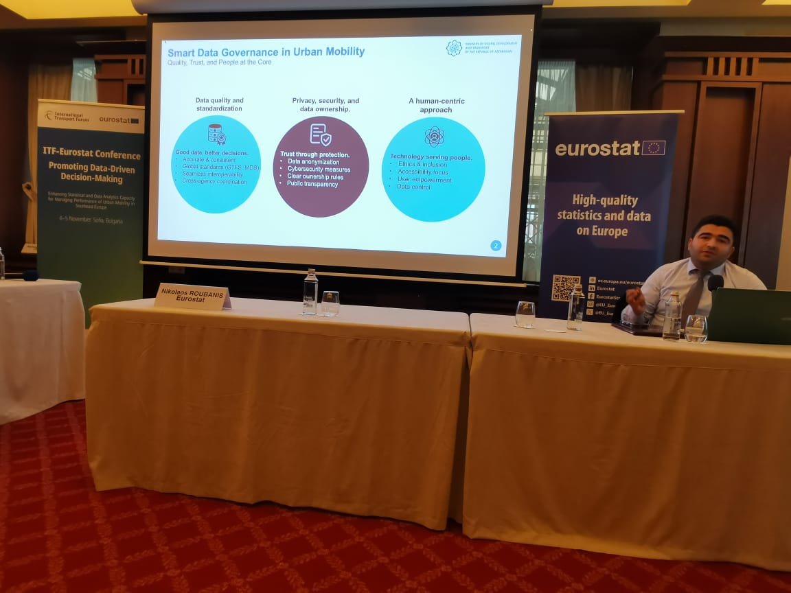 Finss.az - Azərbaycan Bolqarıstanın paytaxtı Sofiyada Beynəlxalq Nəqliyyat Forumu (BNF) və “Eurostat”ın təşkil etdiyi “Məlumatlara əsaslanan qərar qəbuletmənin təşviqi” mövzusundakı konfransda təmsil olunub. Tədbirdə 20-yə yaxın ölkənin mütəxəssisləri səmərəli və dayanıqlı şəhər mobilliyi sistemlərinin formalaşdırılmasında rəqəmsallaşmanın rolunun gücləndirilməsinə dair müzakirələr aparıblar. Sessiyalar zamanı iştirakçılar ölkələrinin təcrübələrini bölüşüblər.