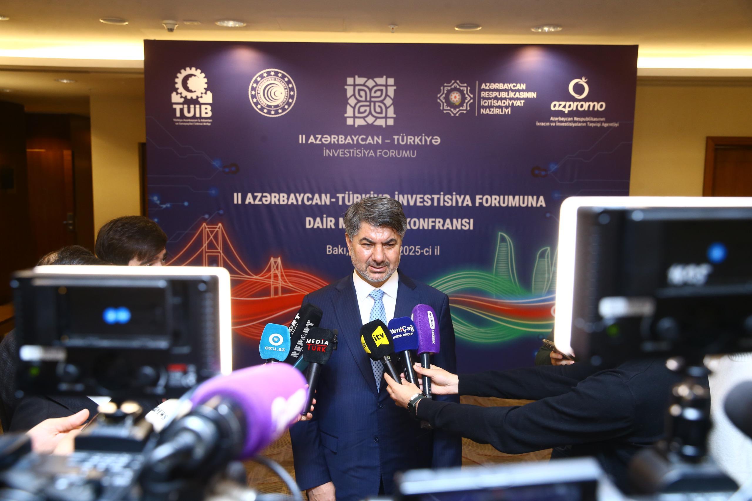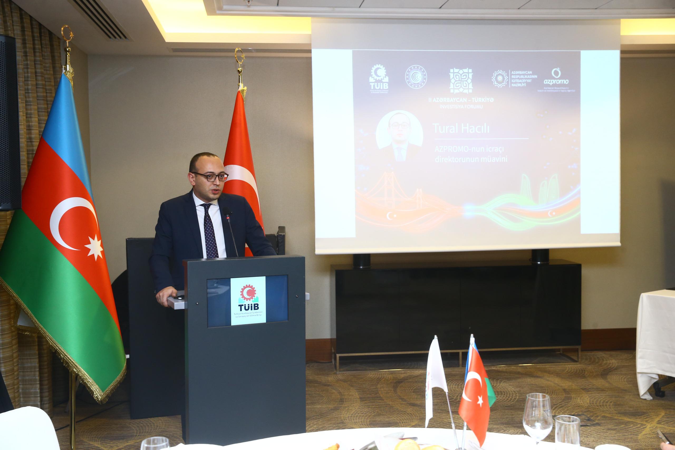 Bu il 23 dekabr tarixində Bakıda Azərbaycan Respublikasının İqtisadiyyat Nazirliyi və Türkiyə Respublikasının Ticarət Nazirliyinin dəstəyi, İxracın və İnvestisiyaların Təşviqi Agentliyi – AZPROMO və Türkiyə-Azərbaycan İş Adamları və Sənayeçiləri İctimai Birliyinin (TÜİB) birgə təşkilatçılığı ilə II Azərbaycan–Türkiyə İnvestisiya Forumu keçiriləcək.