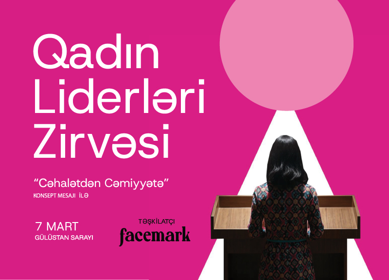 “Facemark” şirkətinin təşkilatçılığı ilə ölkəmizdə II Qadın Liderləri Zirvəsi keçiriləcək. Zirvə 7 mart tarixində Gülüstan Sarayında baş tutacaq və “Cəhalətdən cəmiyyətə” konsept mesajı ilə bilikdən dəyərə, fərdi inkişafdan ictimai təsirə gedən yolu ön plana çıxaracaq.