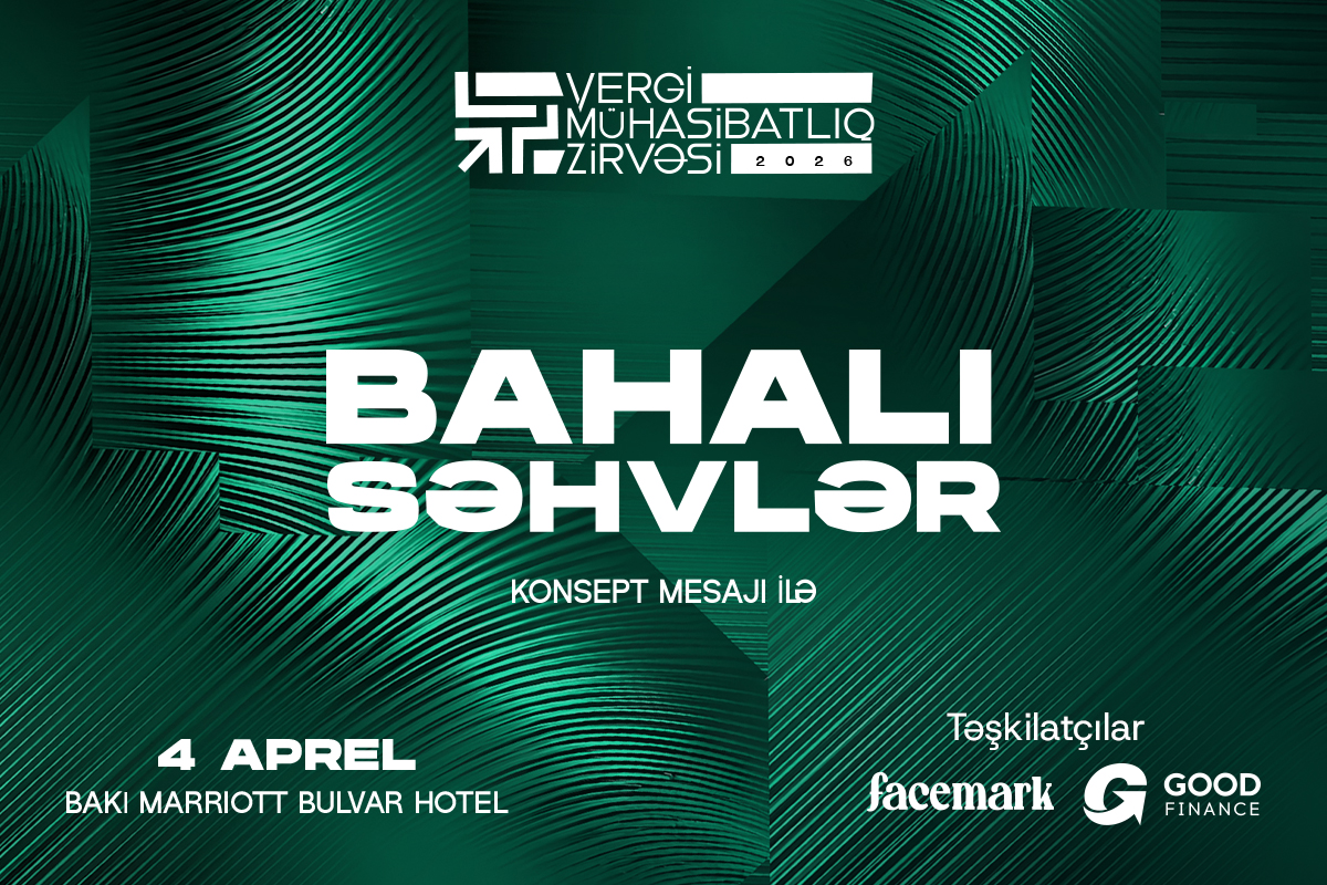 Finss.az - “Facemark” və “Good Finance” şirkətlərinin təşkilatçılığı ilə ölkəmizdə IV Vergi Mühasibatlıq Zirvəsi keçiriləcək. Dördüncü dəfə baş tutan zirvə son 3 il ərzində vergi, mühasibatlıq və maliyyə sahəsində fəaliyyət göstərən peşəkarlar üçün etibarlı bilik və müzakirə platformasına çevrilib.