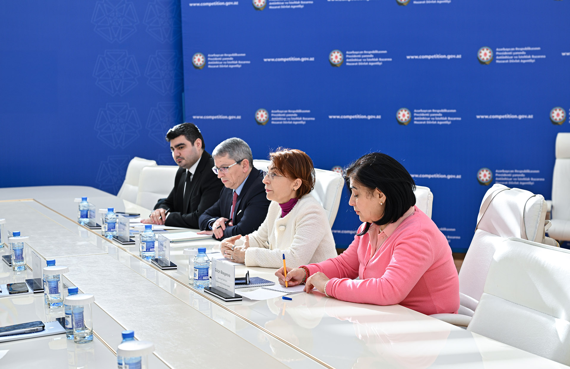Azərbaycan Respublikasının Prezidenti yanında Antiinhisar və İstehlak Bazarına Nəzarət Dövlət Agentliyində “Ümumdünya Ticarət Təşkilatına (ÜTT) üzvlük danışıqları və ticarətlə bağlı fəaliyyətlər, keyfiyyət infrastrukturunun və rəqəmsal idarəetmə sisteminin gücləndirilməsi üzrə Azərbaycan Hökumətinə dəstək” texniki yardım layihəsi çərçivəsində görüş keçirilib. Görüşdə Agentliyin nümayəndələri ilə yanaşı, Azərbaycan Respublikasının İqtisadiyyat Nazirliyinin, Antiinhisar və İstehlak Bazarına Nəzarət Dövlət Agentliyinin tabeliyində olan Azərbaycan Standartlaşdırma İnstitutunun (AZSTAND) nümayəndələri, eləcə də beynəlxalq ekspertlər iştirak ediblər.
