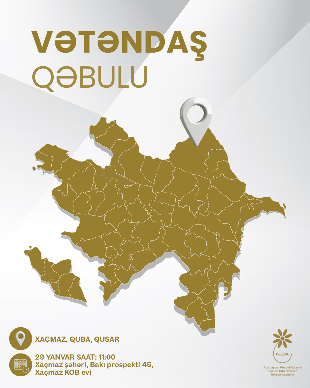 29 yanvar 2026-cı il tarixində KOBİA-nın İdarə Heyəti sədrinin müavini Emil Hüseynli Xaçmaz, Quba və Qusar rayonlarından olan sahibkarları qəbul edəcək. Qəbul saat 11:00-dan etibarən "Xaçmaz KOB evi"ndə (Xaçmaz şəhəri, Bakı prospekti 45 ünvanında) keçiriləcək.