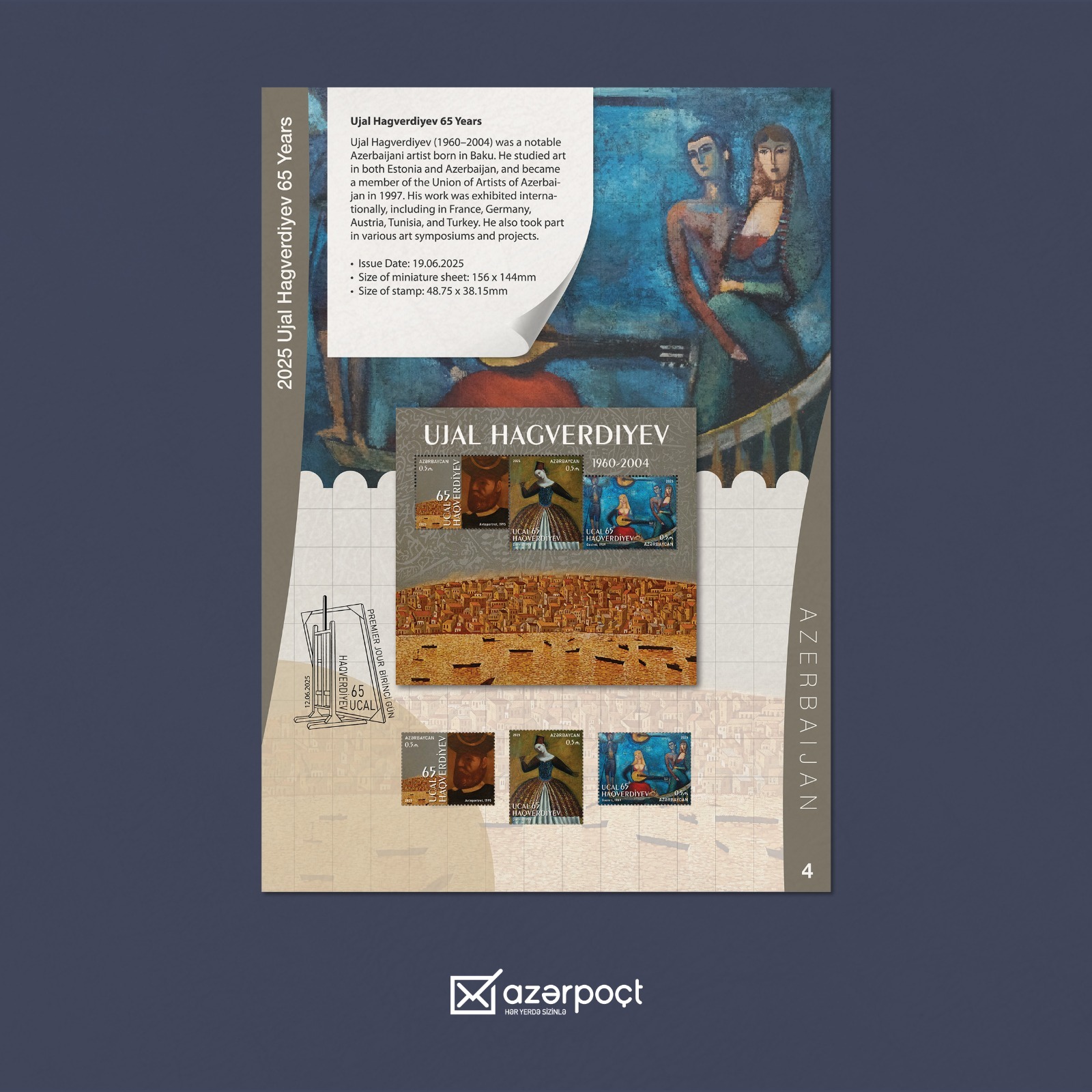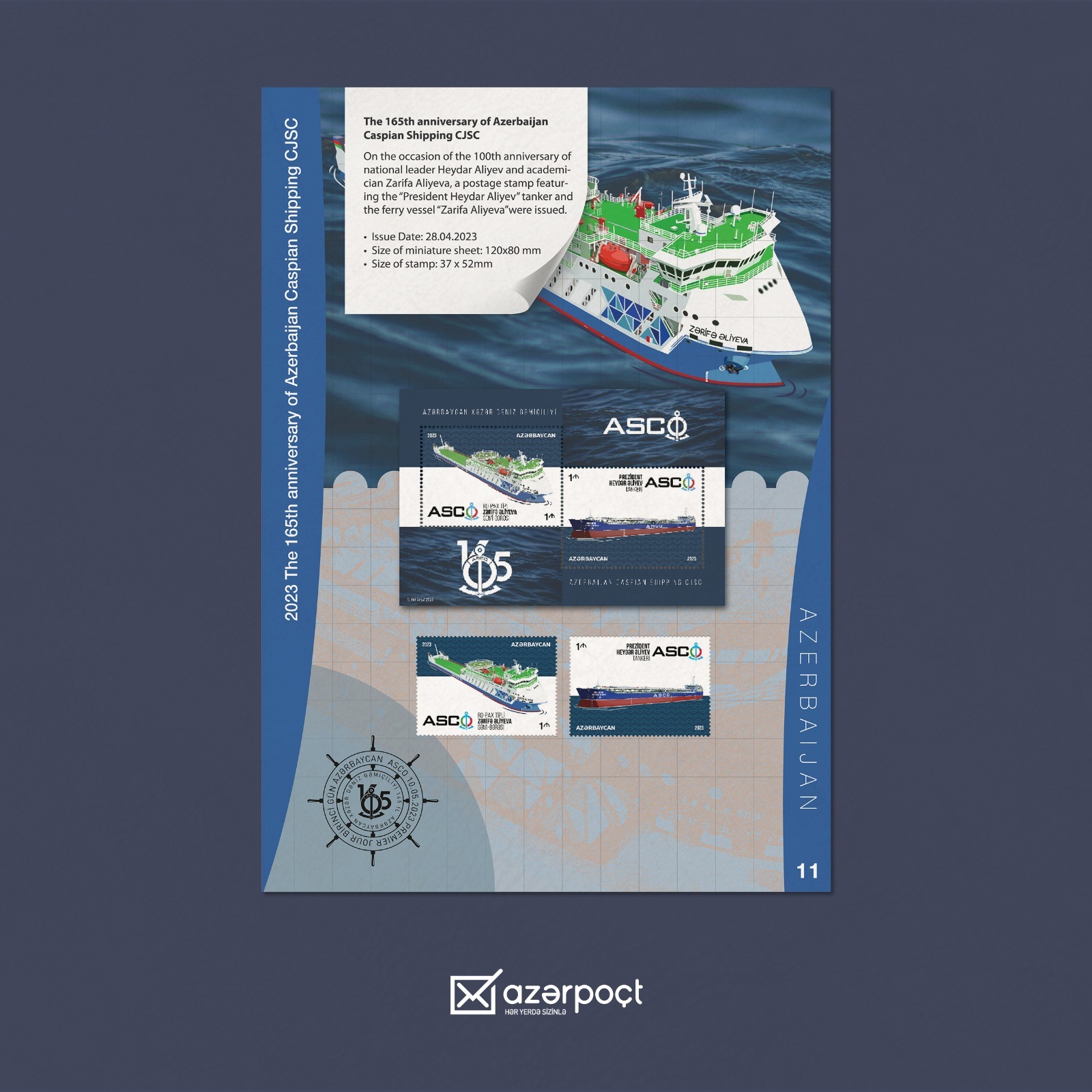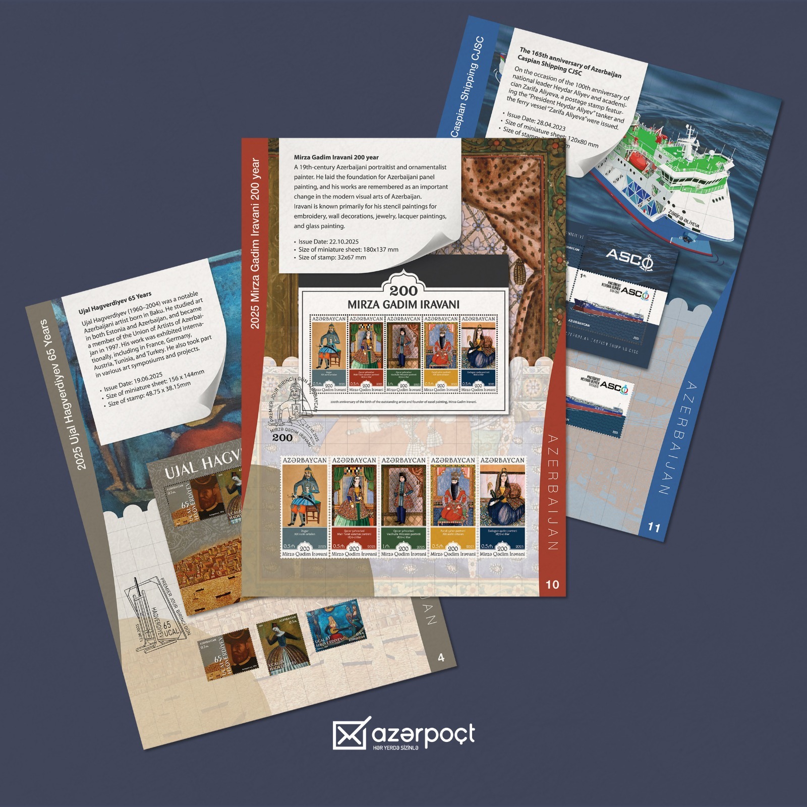 Sərgidə ölkəmizi AZCON Holding şirkətlərindən olan “Azərpoçt” MMC tərəfindən dövriyyəyə buraxılmış müasir poçt markaları təmsil edib. Azərbaycan stendində Xəzər Dəniz Gəmiçiliyinin 165 illiyi, Ucal Haqverdiyevin 65 illiyi, Mirzə Qədim İrəvaninin 200 illiyinə həsr olunmuş markalar, eləcə də ölkənin tarixi və milli kimliyini əks etdirən digər buraxılışlar nümayiş etdirilib.