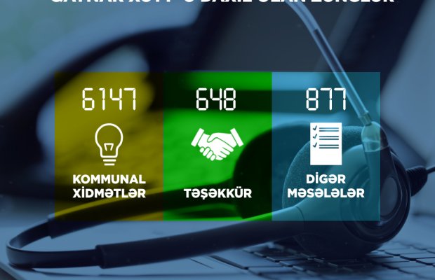 Daxil olan zənglərin 6147-si elektrik və istilik enerjisi, təbii qaz təchizatı, 648-i təşəkkür xarakterli, 877-si isə digər məsələlərlə bağlı olub.