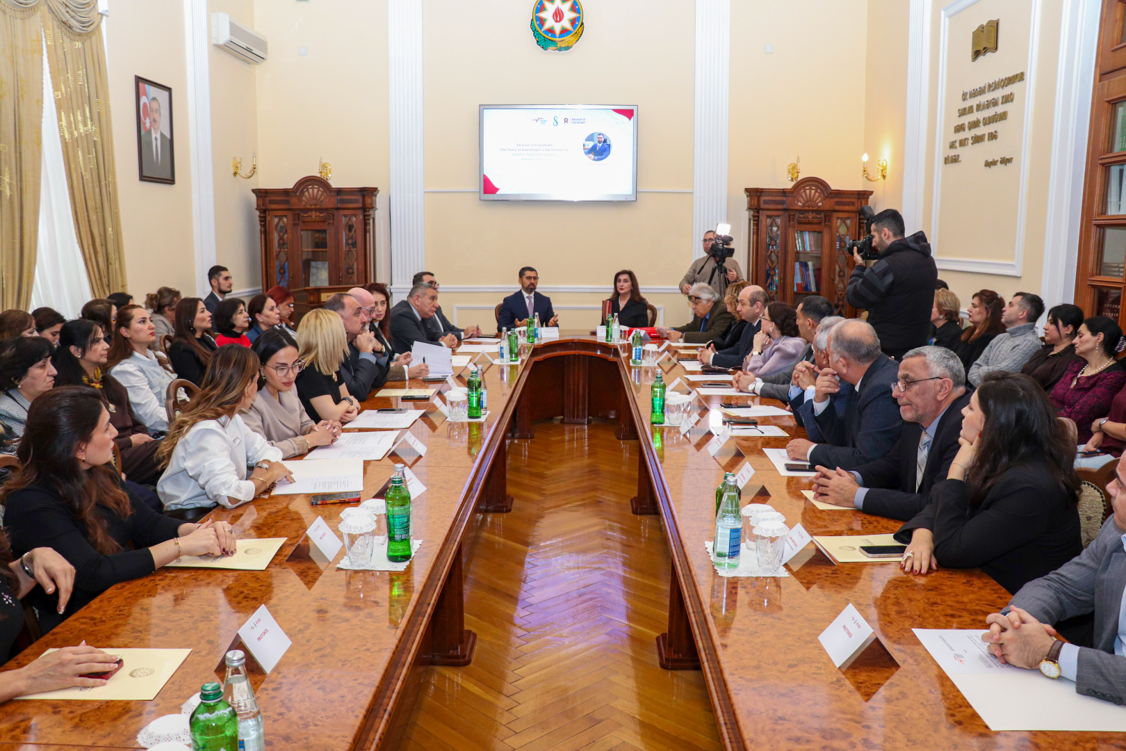 Açılış nitqi ilə çıxış edən Qarabağ Dirçəliş Fondunun İdarə Heyətinin sədri Rəhman Hacıyev “Qarabağın Dirçəlişi: Azərbaycan İntibahının Hekayəsi” kitabının əhəmiyyəti və hazırlanma prosesi ilə bağlı geniş məlumat verib.