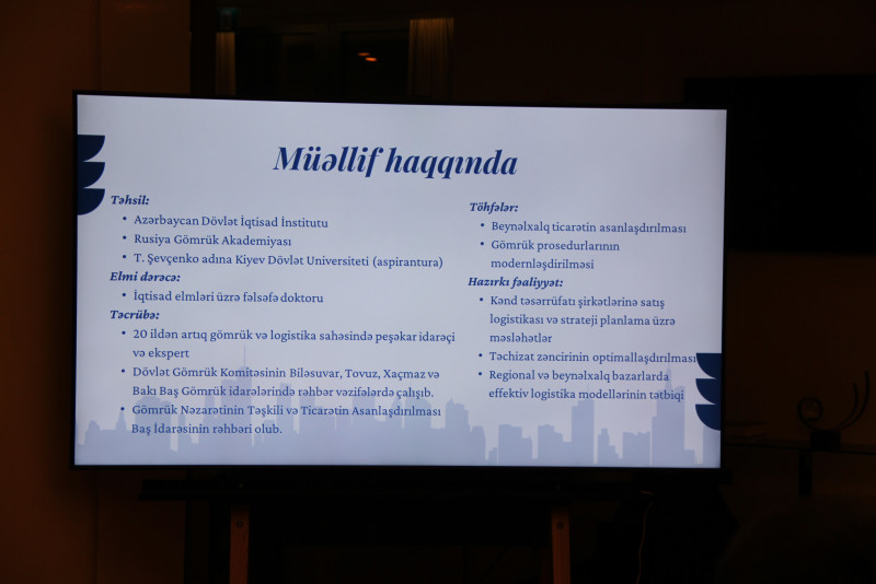 İqtisadi elmlər üzrə fəlsəfə doktoru Kənan Məmmədov və Zivər Zeynalovanın müəllifi olduğu "Qlobal İstehsalat Şəbəkələrində Logistika və Maliyyə Xidmətləri" adlı kitabın təqdimat mərasimi keçirilib.