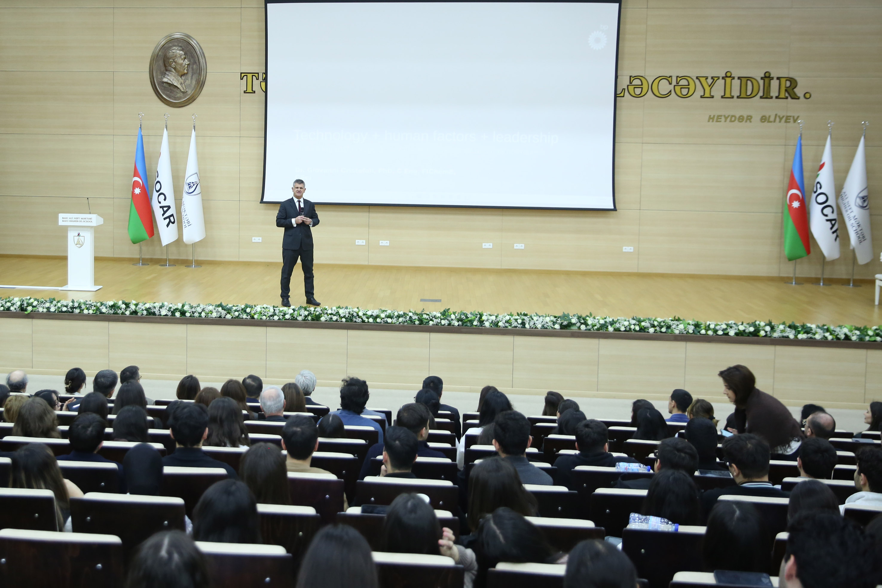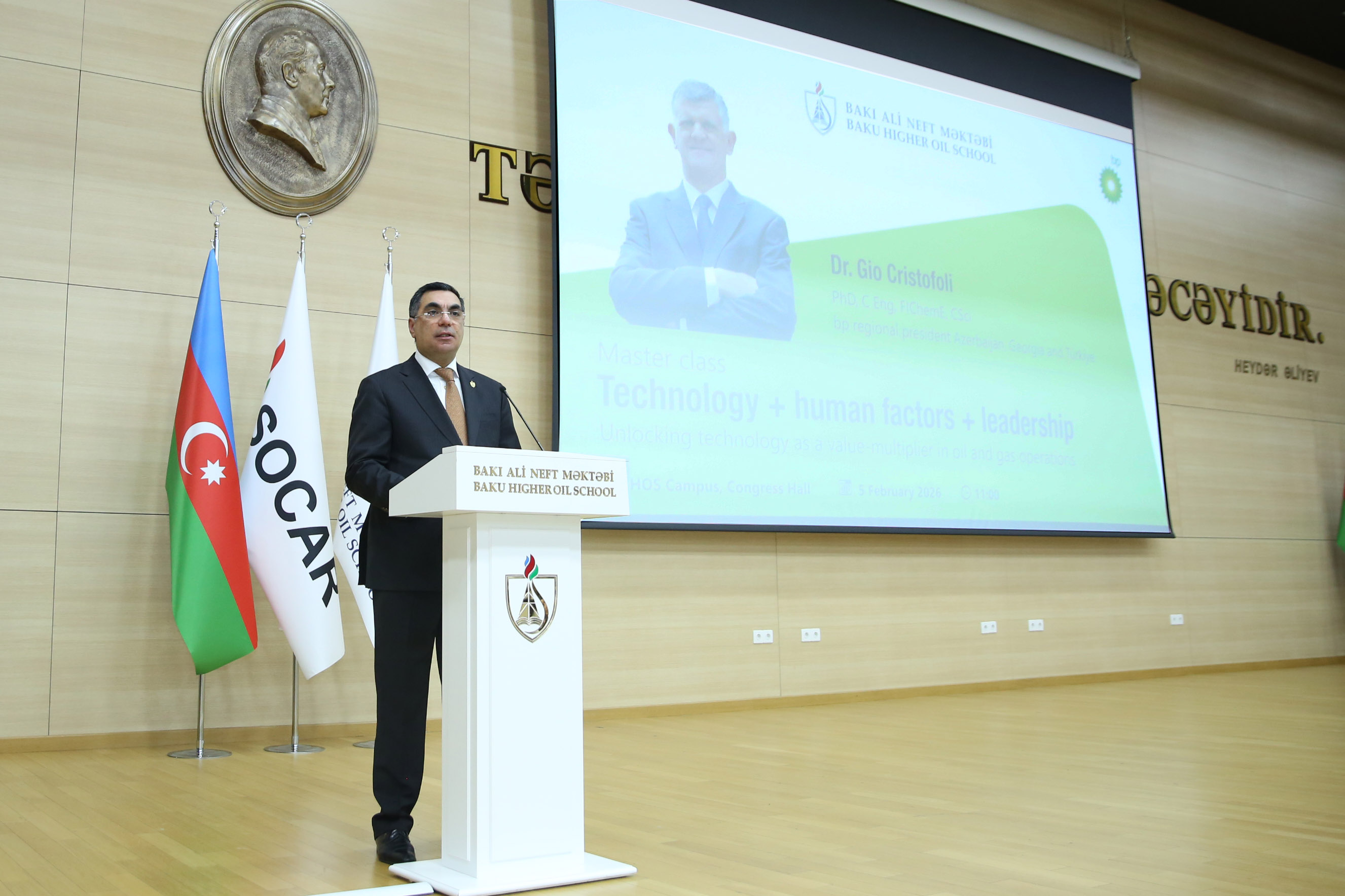 Cio Kristofoli “Texnologiya, insan faktoru, liderlik” mövzusunda keçdiyi master-klasda texnologiyanın peşəkar kadrlar və səmərəli proseslərlə bərabər enerji sektorunda artan rolu və innovasiyaların tətbiqi barədə danışıb. O, karyera yüksəlişi, liderlik bacarıqlarının qazanılması və uğurlu mütəxəssis olmaq üçün şəxsi təcrübələrini bölüşüb, tövsiyələrini verib, tələbələrin suallarını cavablandırıb.