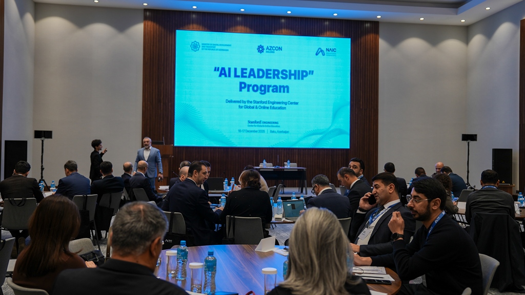 Bakıya səfər edən Stanford təlimçiləri tədrisi üç əsas strateji istiqamət – süni intellekt ekosistemi, süni intellekt ilə güclənən təşkilatlar, təsir üçün süni intellekt innovasiyası üzrə həyata keçirirlər.
