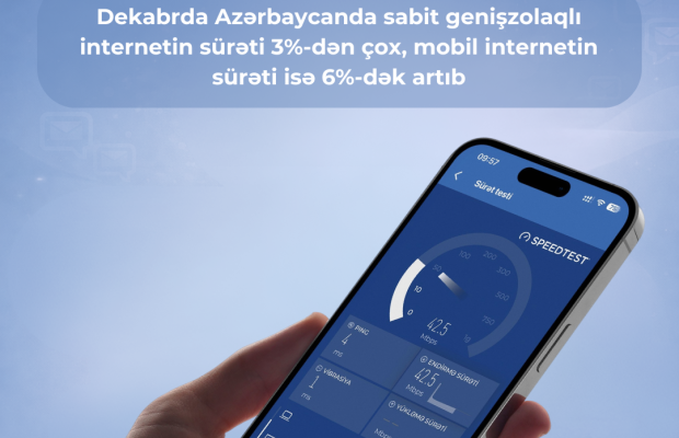 Noyabr ayı ilə müqayisədə sabit genişzolaqlı internetin həcmi 2,68 MB/s və ya 3,11%, mobil internetin sürəti isə 4,55 Mb/s və ya 5,46% yüksəlib.