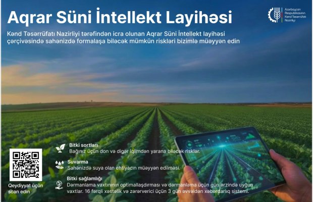 Finss.az - Belə ki, Aqrar Süni İntellekt layihəsi kənd təsərrüfatında müasir texnologiyaların tətbiqini genişləndirmək, fermer və sahibkarların qərarvermə proseslərini məlumat əsaslı və daha səmərəli etmək məqsədi ilə həyata keçirilir. Layihə çərçivəsində torpaq və bitki məlumatlarının analiz edilməsi, iqlim və suvarma göstəricilərinin izlənməsi, eləcə də məhsuldarlığın proqnozlaşdırılması üzrə süni intellekt əsaslı modellərin tətbiqi nəzərdə tutulur.