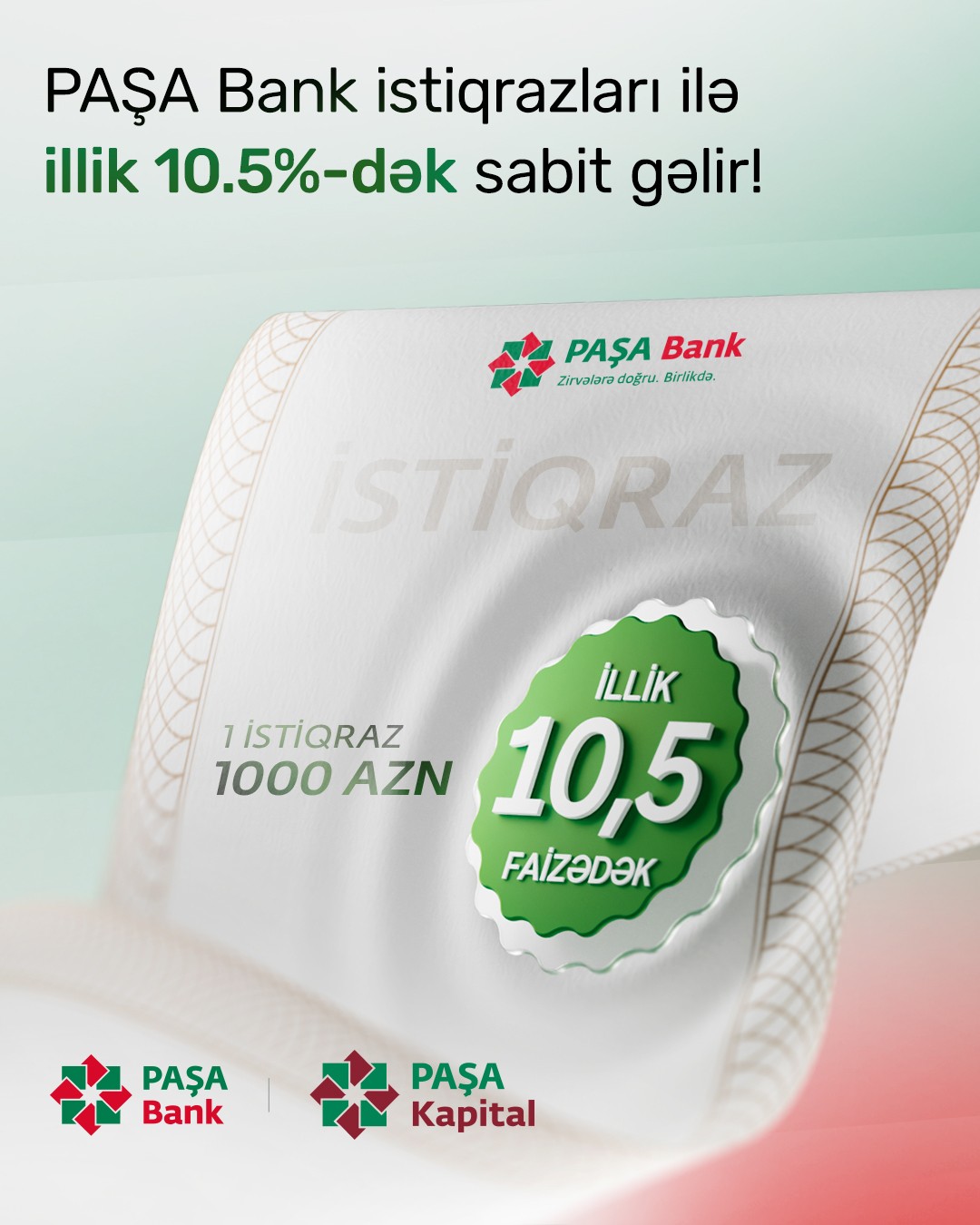 Azərbaycanın aparıcı korporativ maliyyə institutu "PAŞA Bank" ASC-nin emitenti olduğu, illik gəlirliliyi 10,5%-ə qədər, tədavül müddəti 12 ay olan istiqrazların yerləşdirilməsinə 14 avqust 2025-ci il tarixində başlanılacaq.
