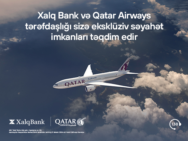 Finss.az - Xalq Bank dünyanın ən nüfuzlu aviaşirkətlərindən olan və “Skytrax World Airline” tərəfindən 2025-ci ildə artıq 9-cu dəfə “Dünyanın ən yaxşı aviaşirkəti” adına layiq görülmüş “Qatar Airways” ilə eksklüziv əməkdaşlığını davam etdirir.