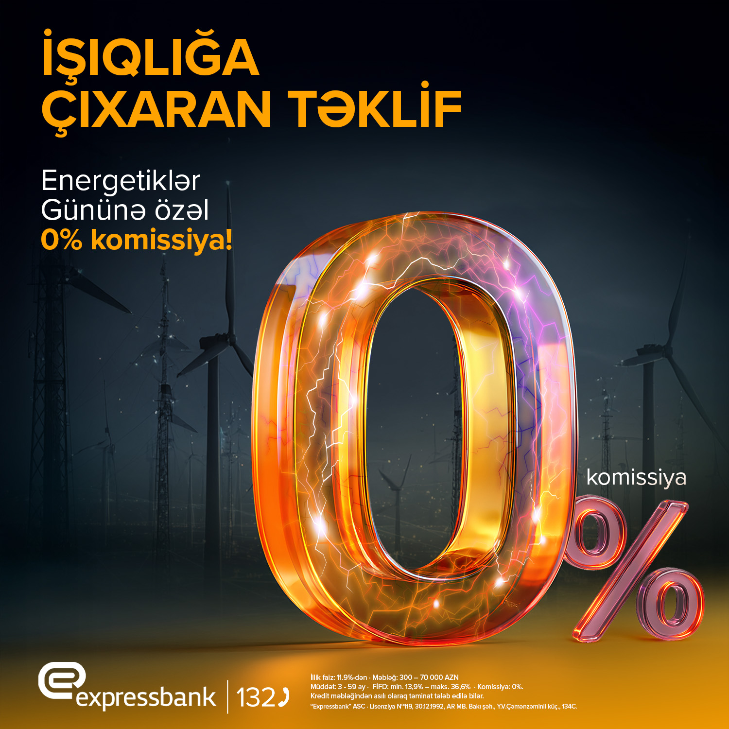Expressbank Energetiklərin Peşə Bayramı ərəfəsində onlara özəl olaraq nağd pul kreditini KOMİSSİYASIZ etdi!