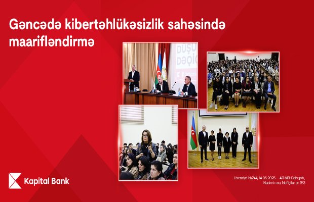 Xatırladaq ki, Kapital Bank tərəfindən həyata keçirilən “Dayan, Düşün, Dəqiqləşdir” kampaniyası çərçivəsində ölkə üzrə maarifləndirici təşəbbüslər həyata keçirilir. Bank təlimlərlə yanaşı, kütləvi informasiya vasitələrində kibertəhlükəsizliklə bağlı press-relizlər, sosial şəbəkələrdə videoçarxlar və posterlər paylaşaraq, vətəndaşların məlumatlılığının artırılmasına dəstək olur.