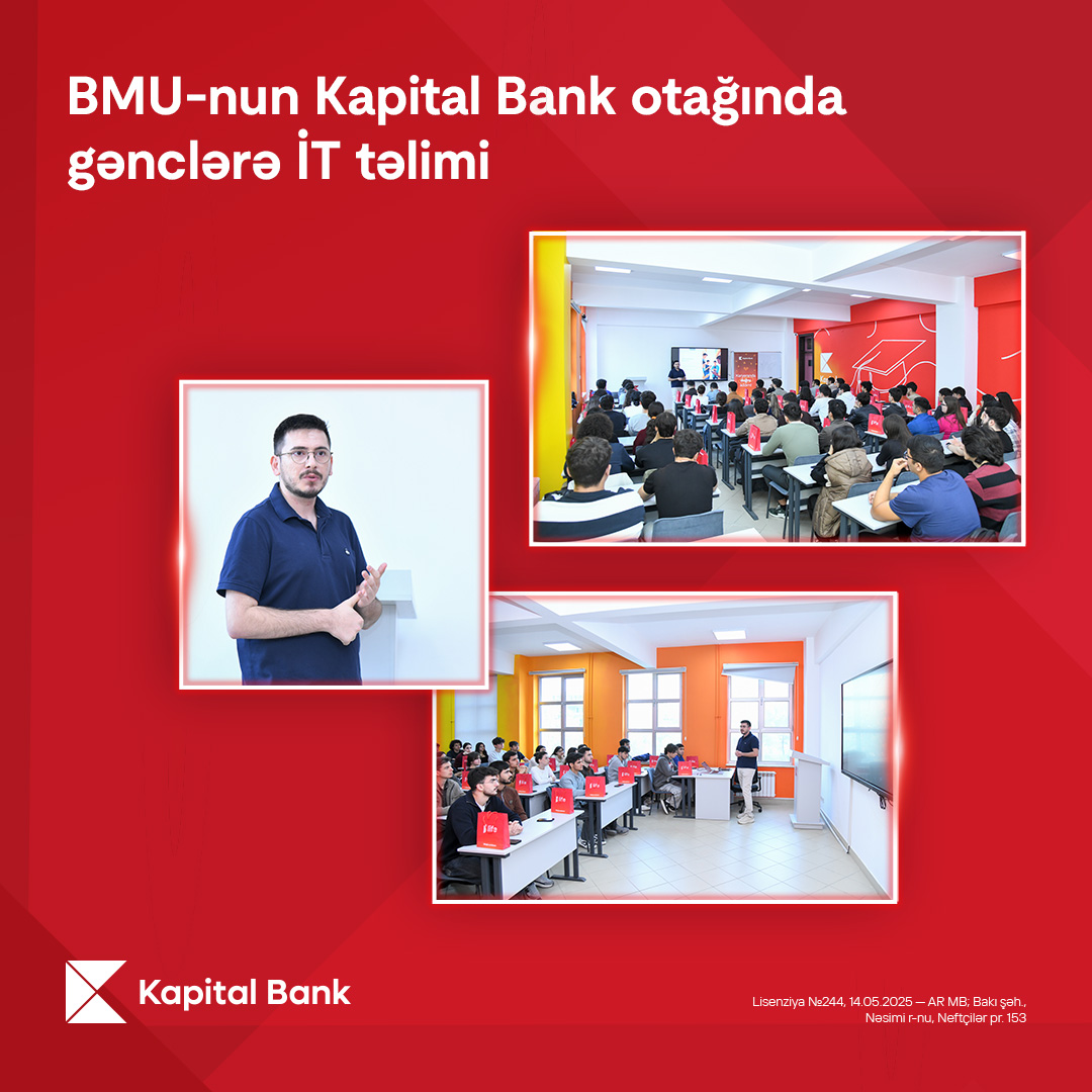 Ölkənin birinci bankı Kapital Bank gənclərin karyera və şəxsi inkişafına dəstək missiyasını davam etdirir. Məlum olduğu kimi bank ali məktəblərdə “Kapital Bank” otaqlarını tələbələrin istifadəsinə verməklə onların təhsilinə və fərdi inkişafına dəstək olmağa çalışır. Belə ki, bu otaqlarda maliyyə istiqamətində fərqli seminarlar, təlimlər və masterklasslar keçirilir.