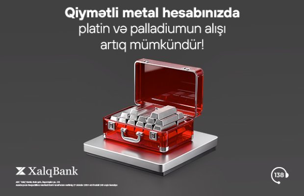 Xalq Bank müştərilərinə etibarlı və çevik investisiya imkanları təqdim etməyə davam edərək yeni xidməti istifadəyə verib. Artıq fiziki və hüquqi şəxslər Xalq Bankda qızıl və gümüş metallarından əlavə, fiziki olmayan platin (XPT) və palladium (XPD) metalına yatırımın edilməsindən yararlana bilərlər.
