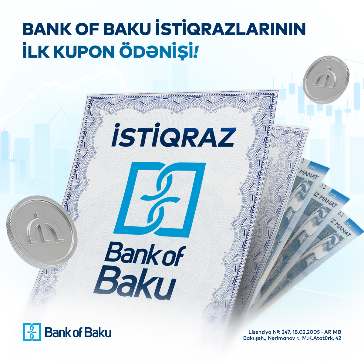 23 dekabr tarixində Bank of Baku tərəfindən 23 sentyabr 2025-ci ildə emissiyası həyata keçirilmiş 20 milyon manatlıq istiqrazlar üzrə bütün investorlara ilk kupon ödənişi uğurla icra edilib.