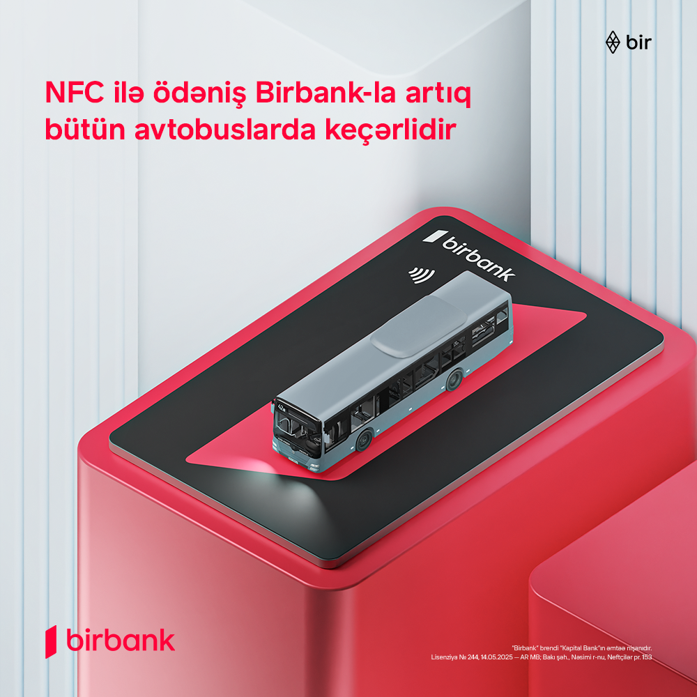 Ölkənin ilk rəqəmsal bankı Birbank-la ictimai nəqliyyatda rəqəmsal ödəniş imkanlarının genişləndirilməsi istiqamətində mühüm mərhələ yekunlaşıb. Belə ki, Birbank-ın tətbiq etdiyi texnoloji dəstək sayəsində “Baku Bus” MMC də daxil olmaqla, Bakı şəhəri üzrə fəaliyyət göstərən bütün avtobus marşrutlarında və “Bakı Metropoliteni” QSC-nin bütün stansiyalarında təmassız ödəniş (NFC) texnologiyasını tətbiq etmək mümkün olub.