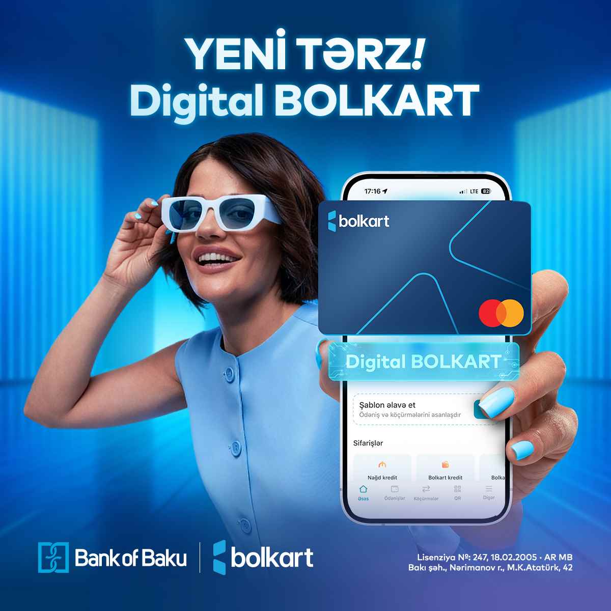Bank of Baku Bolkartın rəqəmsal versiyası - Digital Bolkart-ı da müştərilərin istifadəsinə verib. Eyni zamanda, Bolkart artıq yenilənmiş loqo və kart dizaynı ilə müştərilərin sevimlisi olmağa davam edəcək.