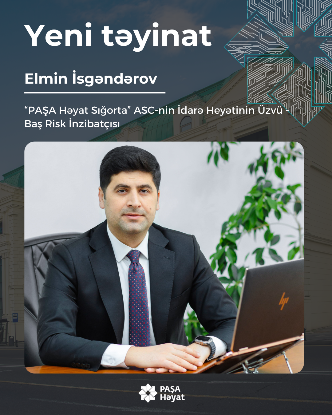 Yeni vəzifəsində Elmin İsgəndərov PAŞA Həyat-da risklərin idarə olunması strategiyasının formalaşdırılması, risk mədəniyyətinin gücləndirilməsi, korporativ idarəetmə və dayanıqlı inkişaf məqsədlərinə uyğun risk çərçivəsinin inkişafına rəhbərlik edəcək.