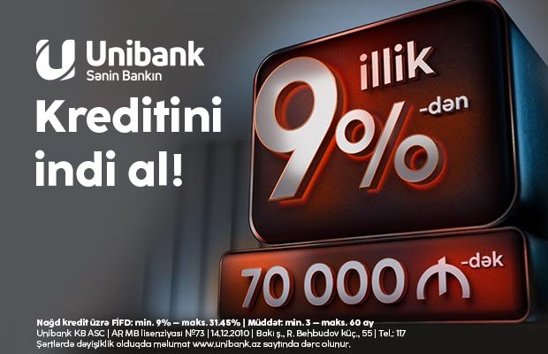 İndi “Unibank”da nağd kredit şərtləri belədir: