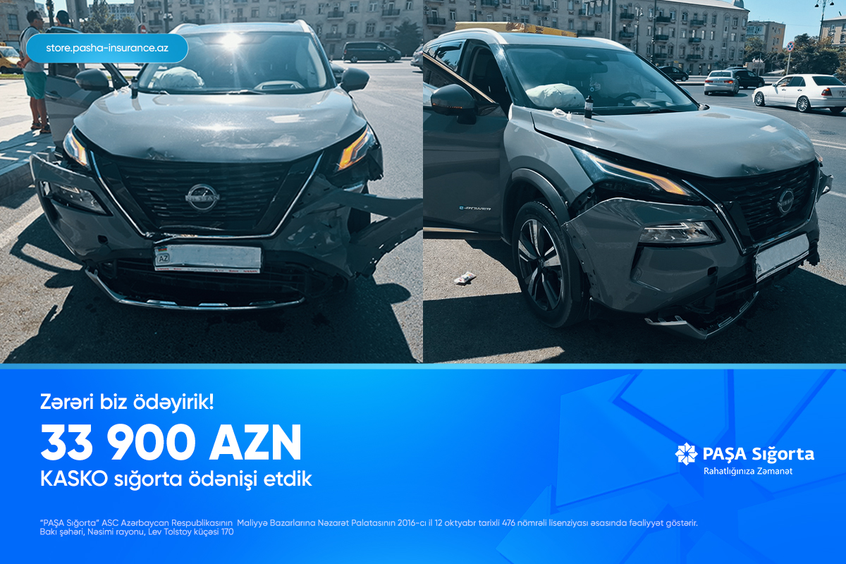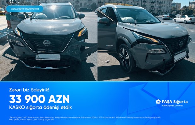 Baş vermiş qəza hadisəsindən sonra PAŞA Sığorta Tam KASKO sığortalı müştərisinə 33 900 AZN dəyərində ödəniş edib.