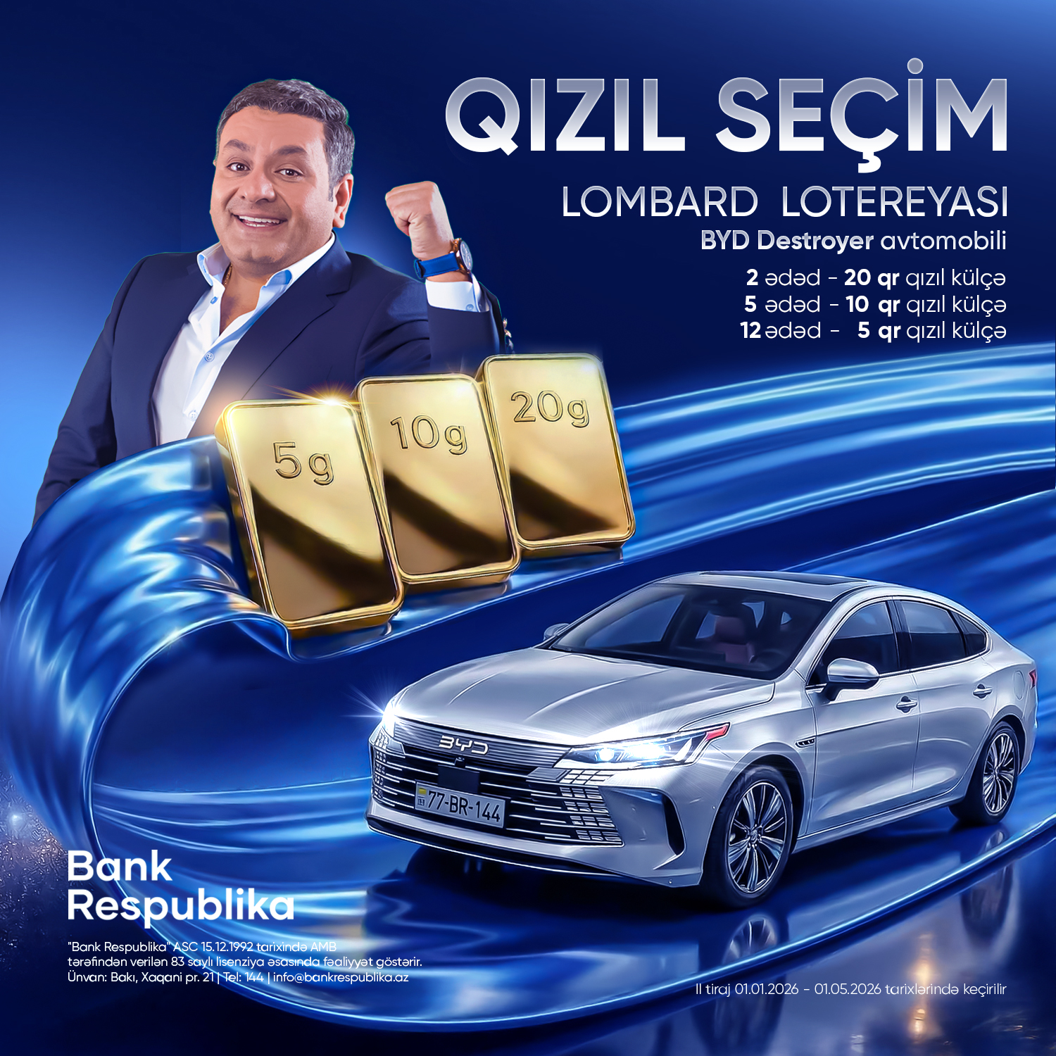 Bank Respublikadan min.500 AZN lombard krediti götürün avtomobil və ya qızıl külçə qazanmaq şansı qazanın!