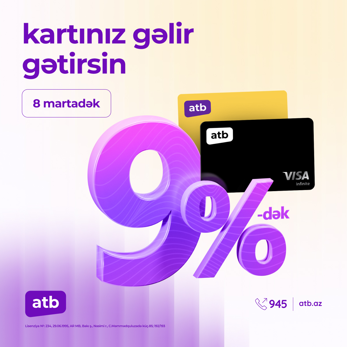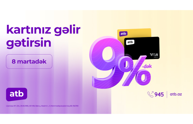 Azər Türk Banka aid ödəniş kartlarındakı qalıq vəsaitlərinə illik 9%-dək gəlir hesablanacaqdır.