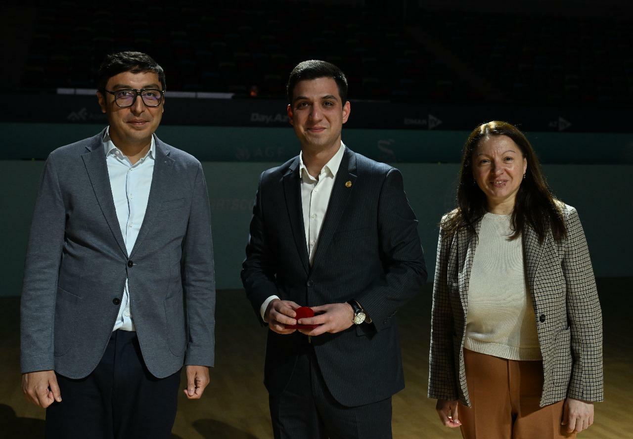Ardınca “Azərbaycan Respublikasının İdman Ustası” dərəcəsinə layiq görülmüş bəzi idmançılara müvafiq vəsiqə və döş nişanları təqdim edilib. Fərid Qayıbov ölkəmizi beynəlxalq arenalarda uğurla təmsil etdikləri üçün idmançıları təbrik edib və yeni uğurlar arzulayıb. Ay ərzində beynəlxalq yarışlarda qazanılmış uğurları əks etdirən videoçarx nümayiş olunub.