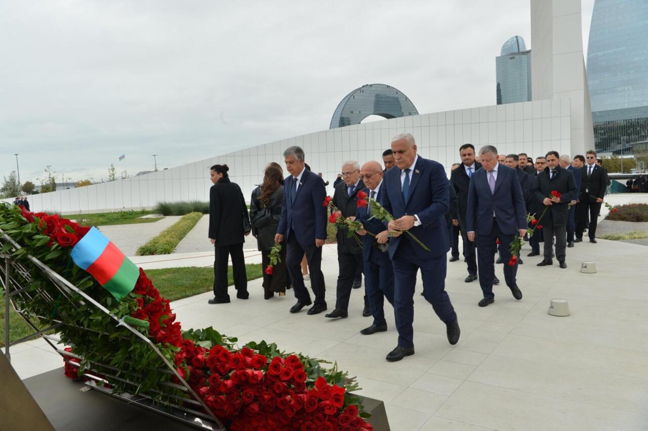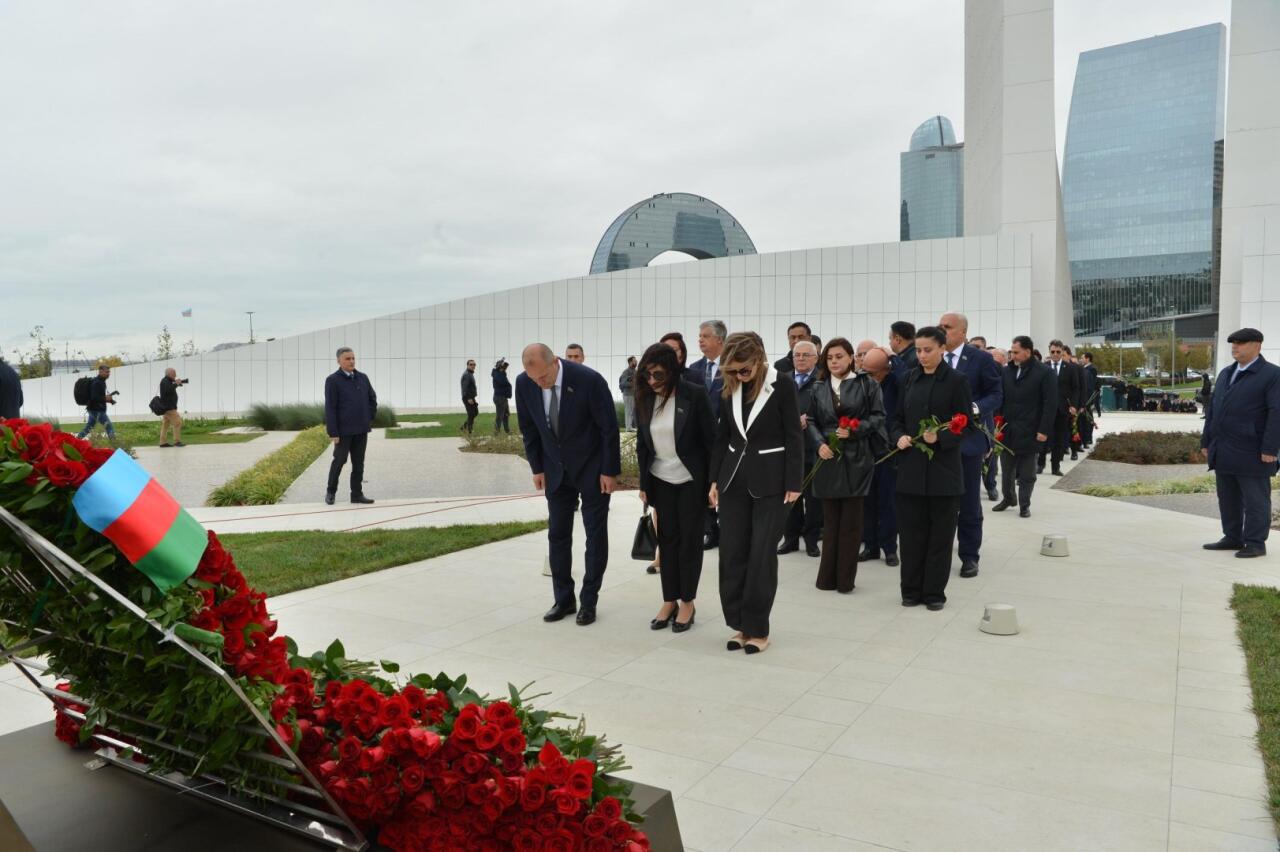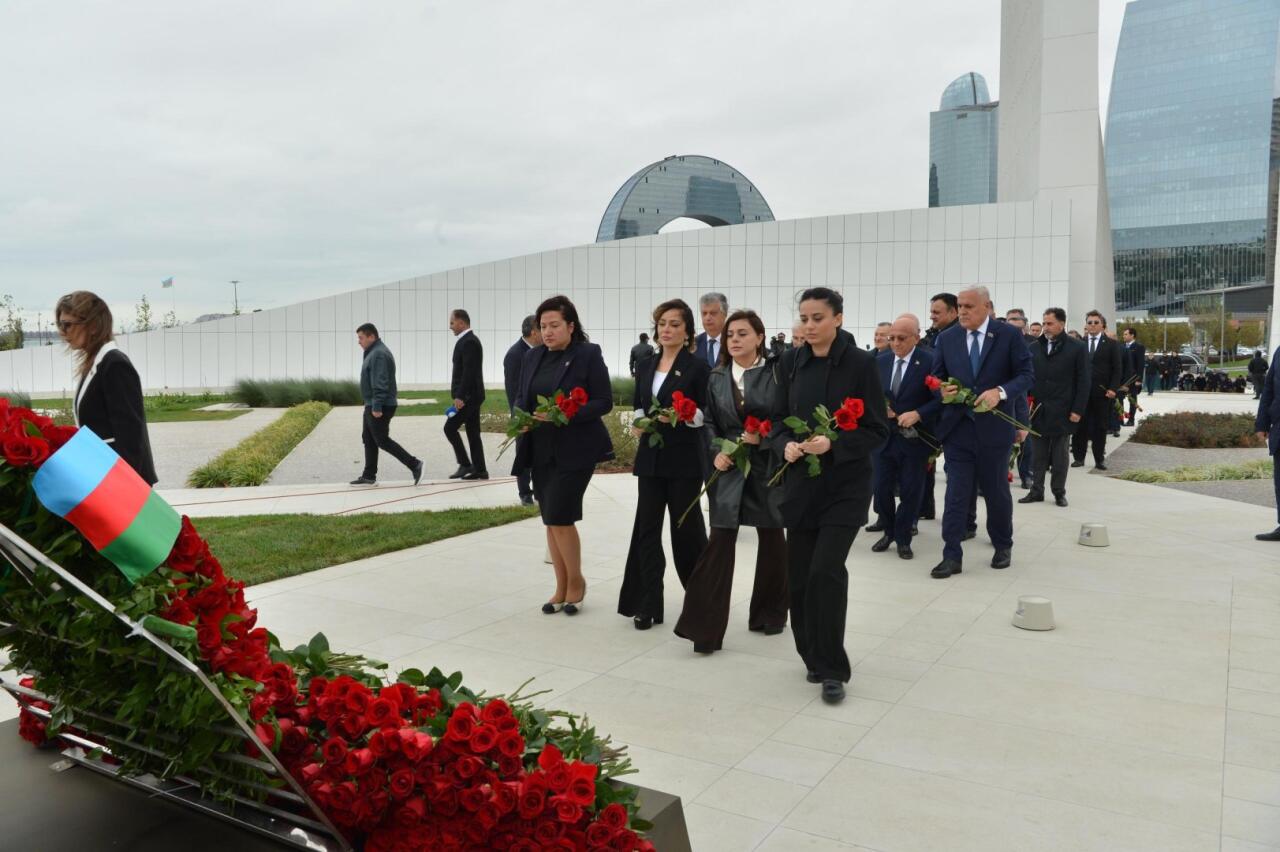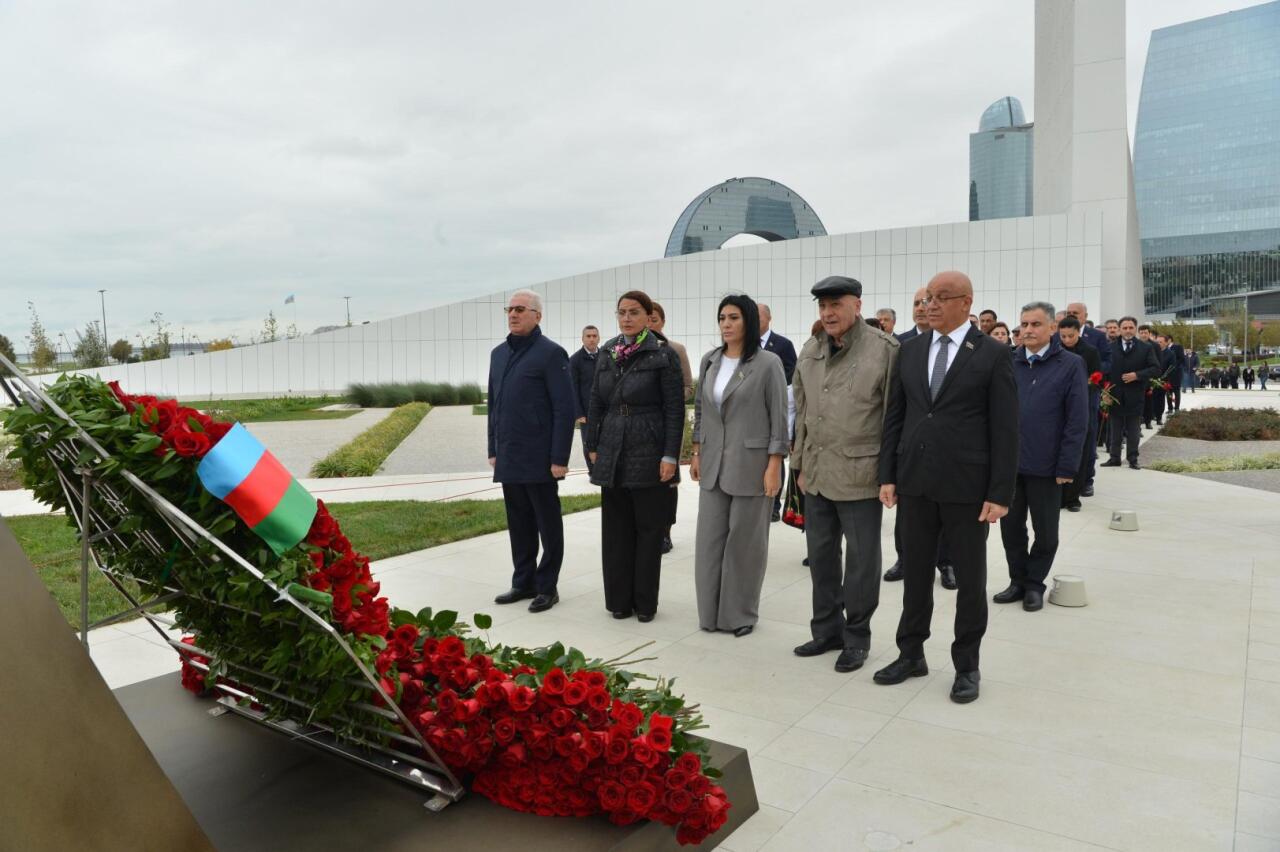 Deputatlar və Milli Məclisin kollektivi Zəfər parkındakı xatirə daşının önünə tər güllər düzüblər, Vətənimizin ərazi bütövlüyü və suverenliyi uğrunda canlarından keçmiş şəhidlərimizi dərin ehtiramla anıblar.
