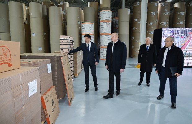 Azərbaycan Respublikasının Prezidenti İlham Əliyev yanvarın 27-də Sumqayıt Sənaye Parkında “Bakı Karton və Qutu Fabriki” MMC-nin karton və qutu taralarının istehsalı müəssisəsinin açılışında iştirak edib.