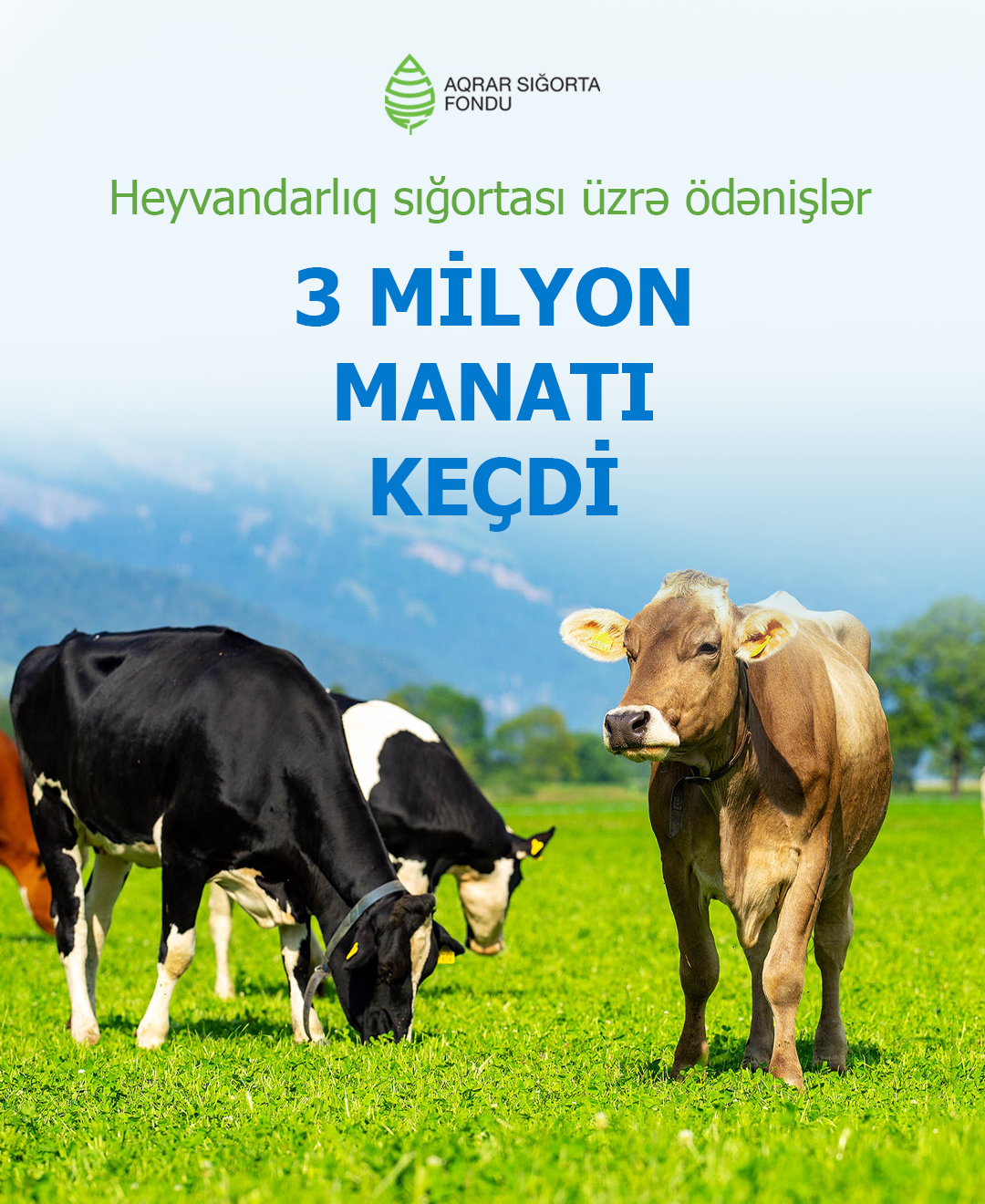 Bugünədək Aqrar Sıgorta Fondu tərəfindən heyvandarlıq təsərrüfatlarında baş verən hadisələr və heyvan tələfatı ilə əlaqədar olaraq fermerlərə ümumilikdə 3,2 milyon manat sığorta ödənişi həyata keçirilib.
