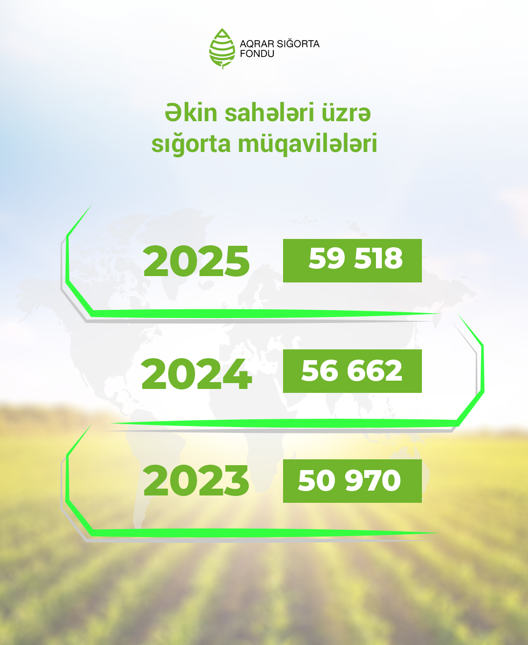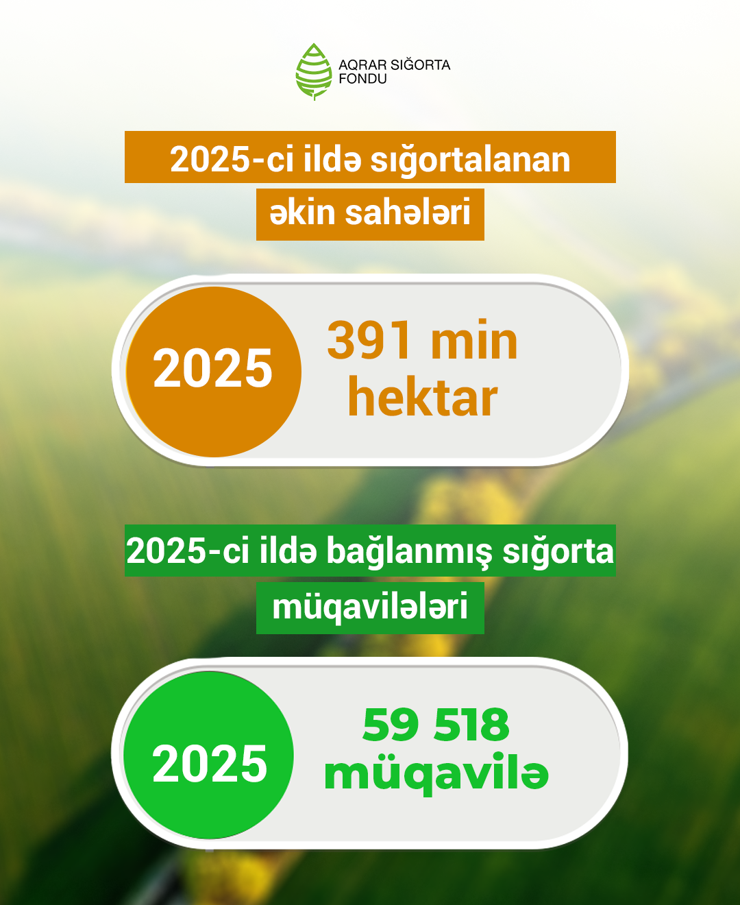2025-ci ildə müxtəlif hadisələr nəticəsində əkin sahələrinə dəyən zərərlərin Aqrar Sığorta Fondu tərəfindən qarşılanması, fermerlərə ödənişlərin kəskin artması səbəbindən əkin sahələrinin sığortalanmasına maraq kəskin artıb. Ötən il ölkə üzrə müxtəlif bitkiləri əhatə edən 391 min hektar əkin sahəsi sığortalanıb.