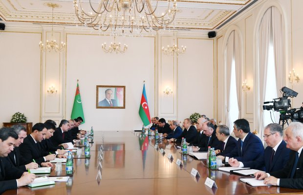 Martın 11-də Azərbaycan Respublikasının Prezidenti İlham Əliyevin və Türkmənistan Prezidenti Qurbanqulu Berdiməhəmmədovun nümayəndə heyətlərinin iştirakı ilə geniş tərkibdə görüşü olub.