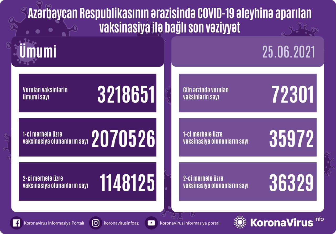 Azərbaycanda son sutkada 72 301 nəfər vaksinasiya olunub.