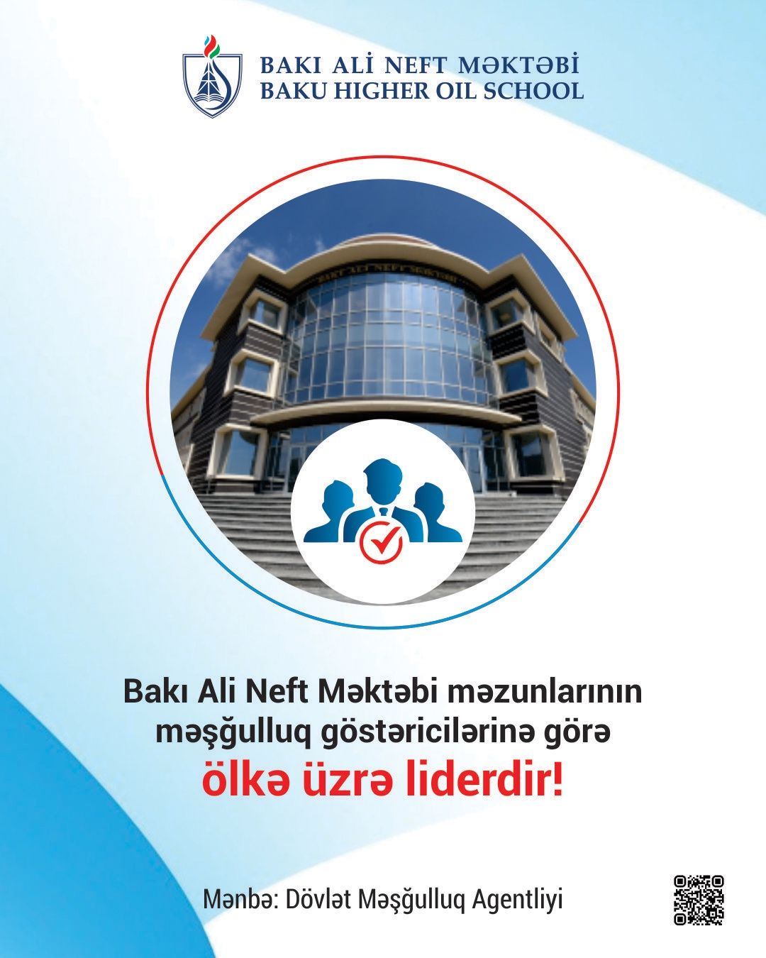 Finss.az - Bakı Ali Neft Məktəbi Dövlət Məşğulluq Agentliyinin “Məzunların məşğulluq reytinqi” siyahısında ali məktəblər arasında məzunlarının məşğulluğunun orta göstəricilərinə görə ilk pillədədir.