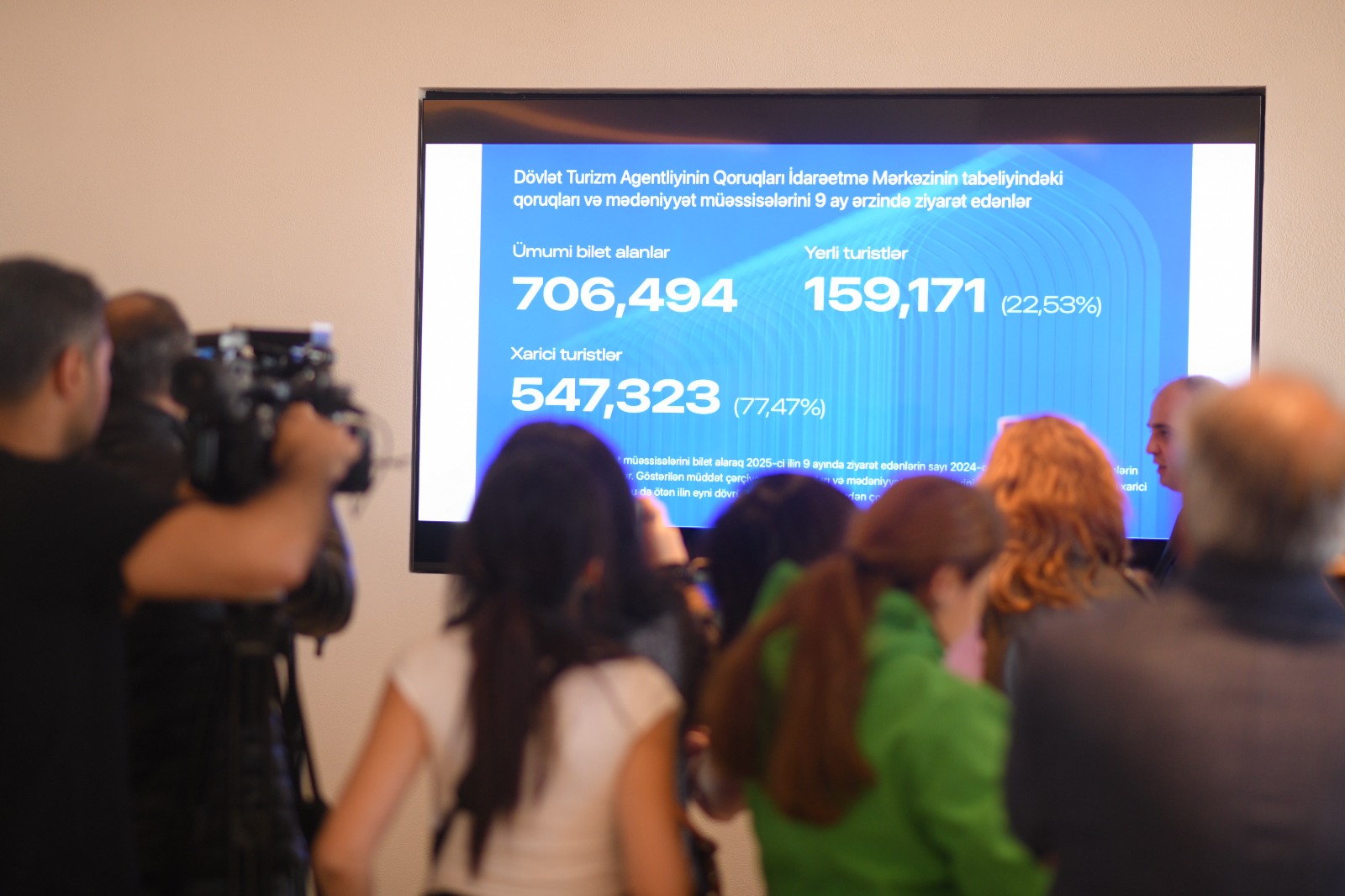 Təqdimatda qoruq və müəssisələri cari ilin 9 ayı ərzində ziyarət edənlərin sayı da açıqlanıb. Məlumat verilib ki, DTA tabeliyində olan qoruqları və muzeyləri 2025-ci ilin 9 ayı üzrə ziyarət edənlərin sayında ötən ilin eyni dövrü ilə müqayisədə 25,71 faiz artım olub. 2025-ci ilin üç rübü ərzində Qoruqları İdarəetmə Mərkəzinin tabeliyindəki qoruqları və mədəniyyət müəssisələrini 159 171 nəfəri yerli, 547 323 nəfəri əcnəbi turist olmaqla 706 494 nəfər ziyarət edib. Göstərilən müddət çərçivəsində qoruqları və mədəniyyət müəssisələrini ziyarət edənlərin 77,47 faizini xarici vətəndaşlar təşkil edib ki, bu da ötən ilin eyni dövrü ilə müqayisədə 10 faizdən çoxdur.