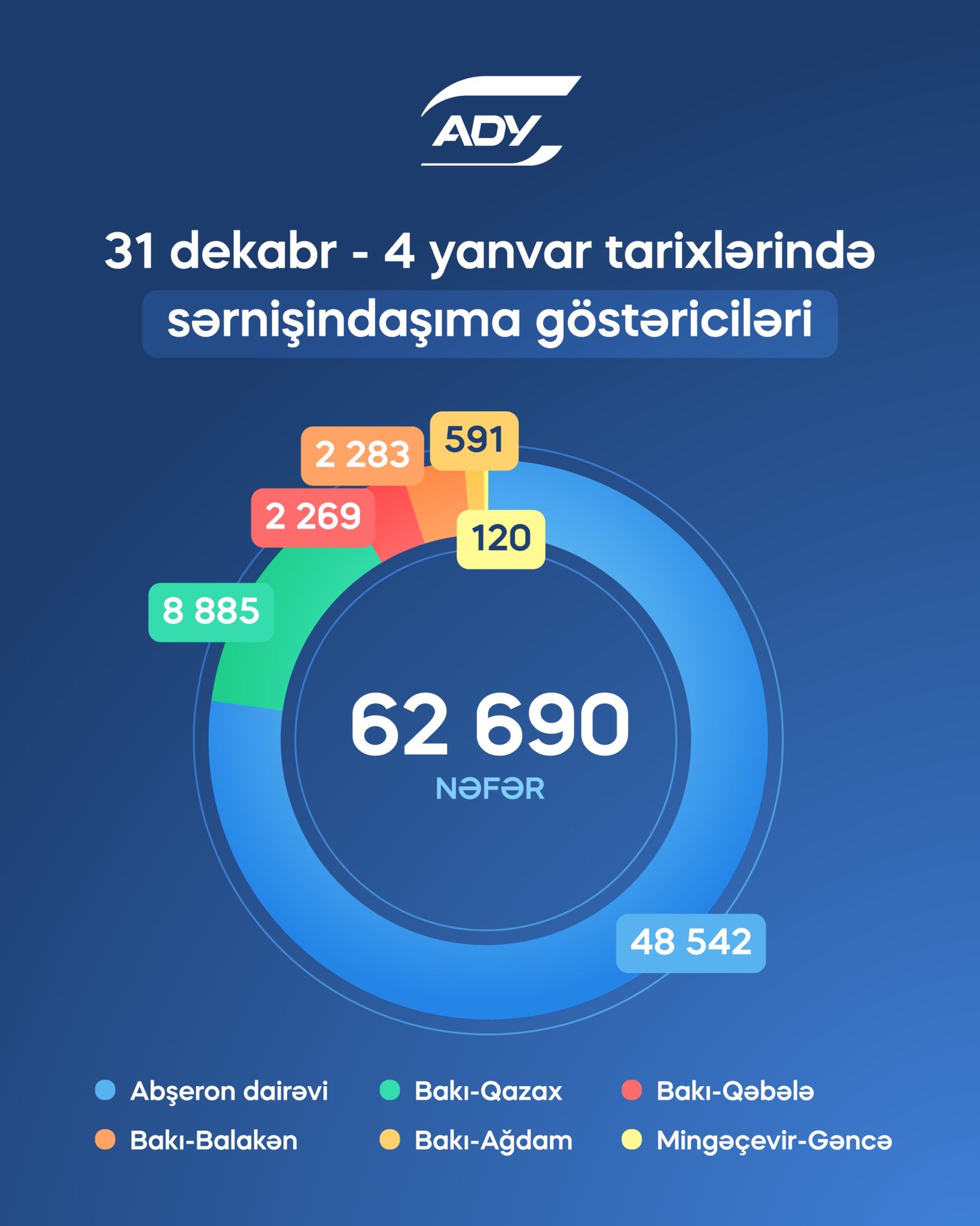 Azərbaycan Dəmir Yolları (ADY) 31 dekabr 2025 – 4 yanvar 2026 tarixlərində 62 690 sərnişin daşıyıb.