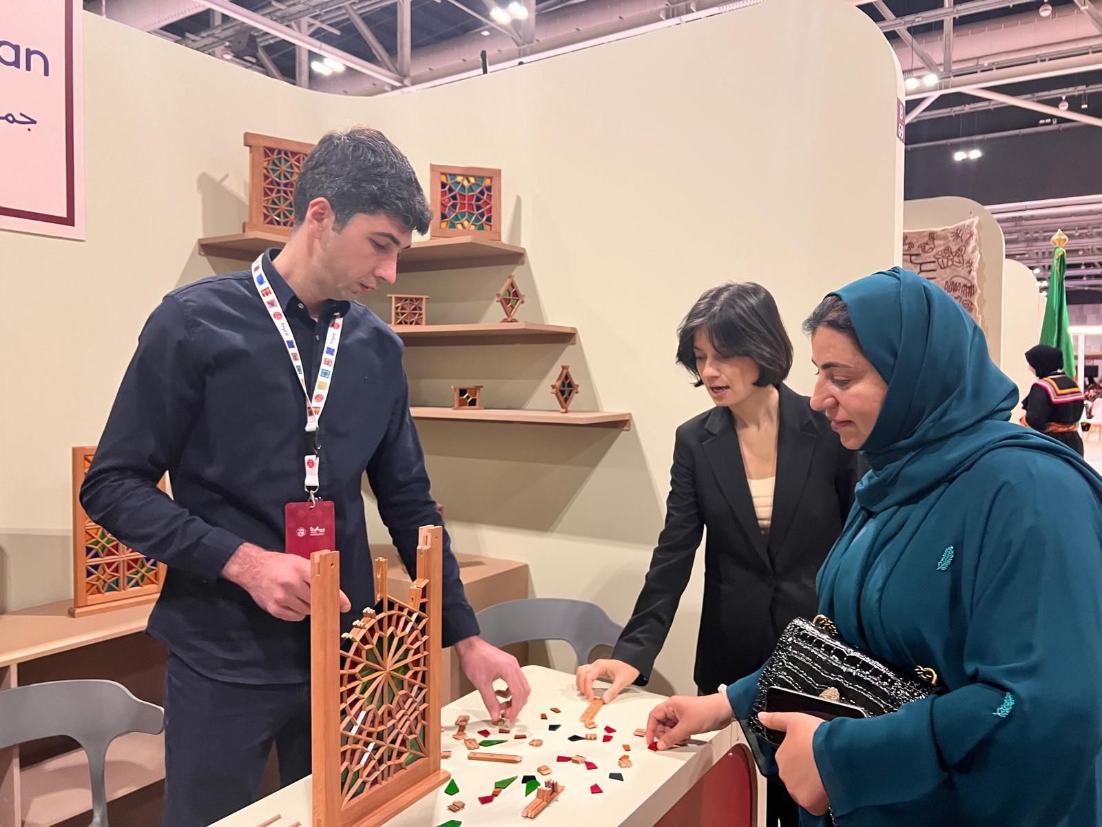 Ziyarətçilər milli stenddə yerli sənətkarlar tərəfindən nümayiş etdirilən Şəkiyə məxsus şəbəkə, təkəlduz və keçə sənəti nümunələri ilə tanış olublar.